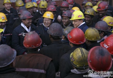 【李克強(qiáng):有人說你們是煤黑子,我說你們是煤亮子】李克強(qiáng)5日來到山西焦煤集團(tuán)官地礦,下井前遇到剛出井的礦工。在滿臉黝黑的礦工人叢中,總理緊緊握著他 們的手說:“你們自己常年在黑暗的井下工作,卻照亮了他人。有人說你們是煤黑子,我說你們是煤亮子。煤炭工人不僅是山西的脊梁,也是國(guó)家的脊梁。”