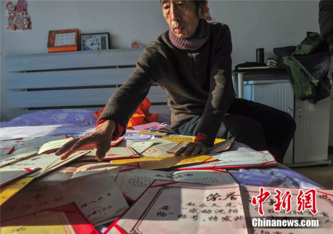 趙永久與他的榮譽(yù)證書。 于海洋 攝