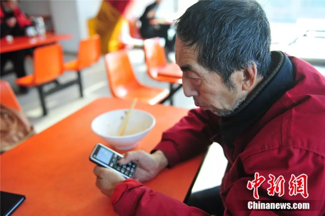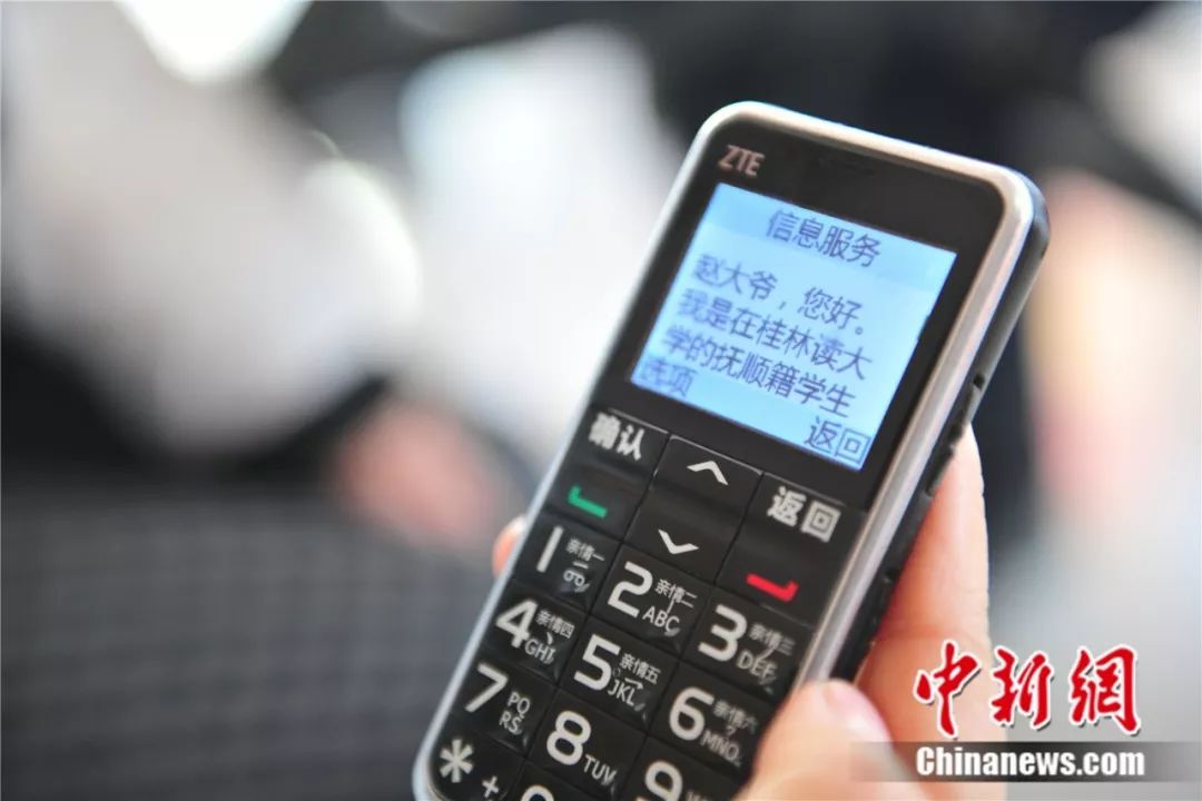在桂林讀書的學(xué)生為趙大爺發(fā)來短消息。于海洋 攝