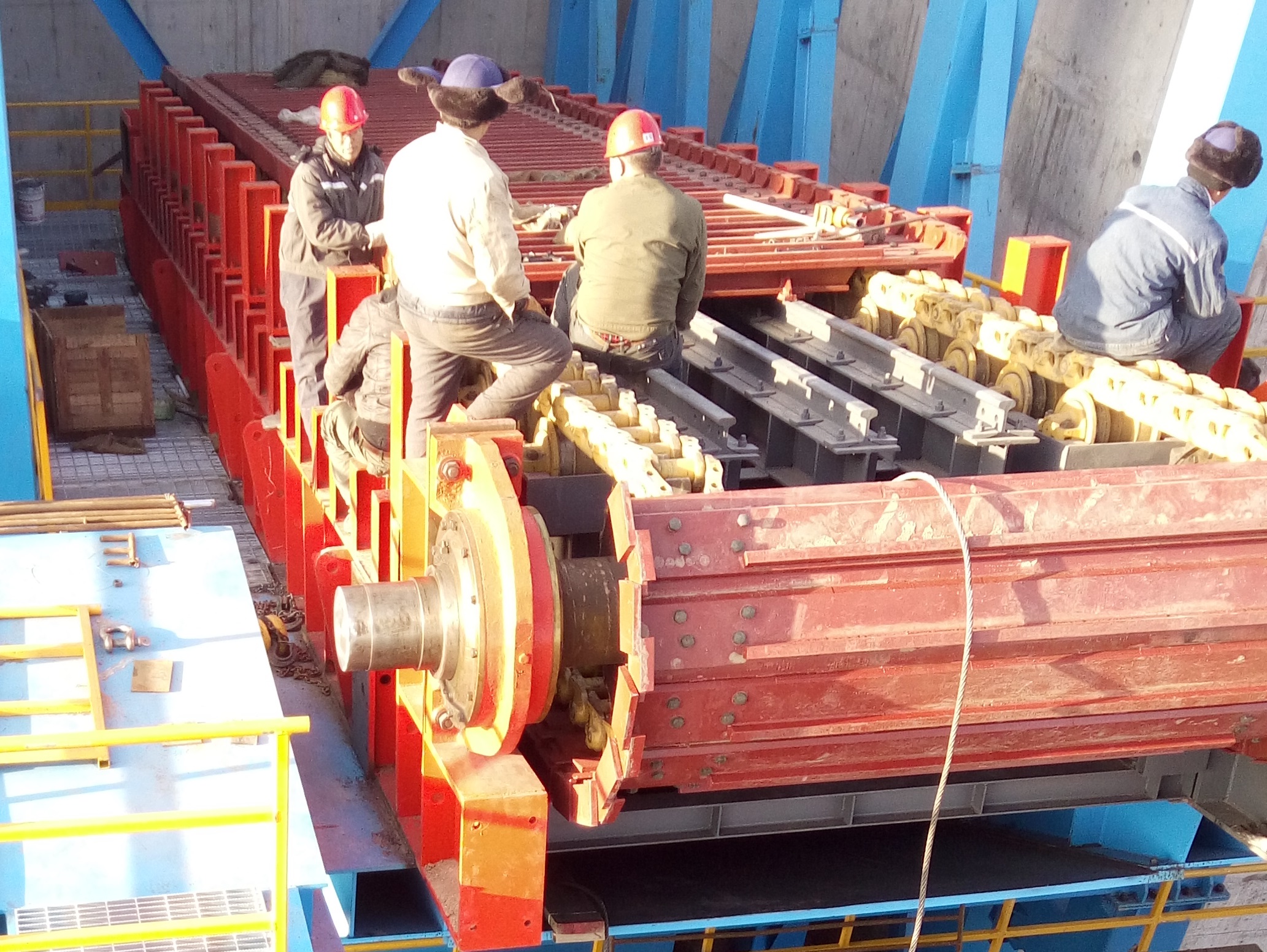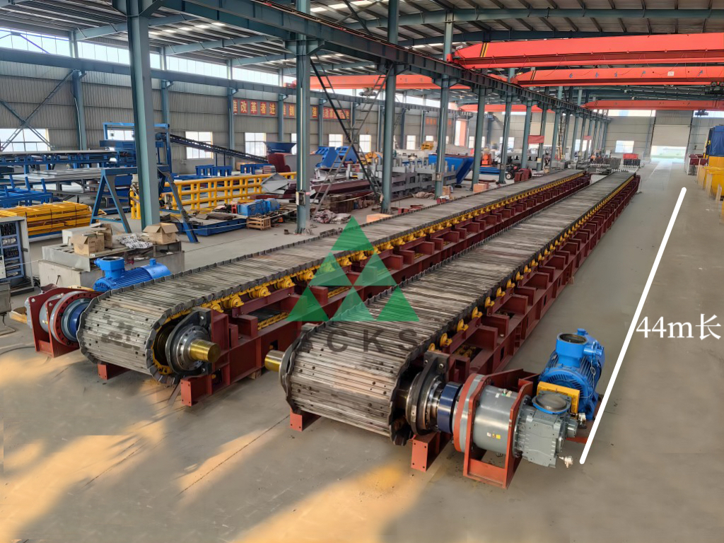 6、B1400x44m重型板式給料機(jī),輸送板寬度1400mm輸送長度達(dá)到44m,是我公司技術(shù)人員和生產(chǎn)部門打破常規(guī)思維、突破多項(xiàng)技術(shù)難題研制成功的運(yùn)輸距離較長的設(shè)備。附44米長重板圖:1.jpg