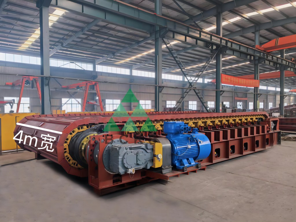 5、我公司為內(nèi)蒙古自治區(qū)某客戶生產(chǎn)的BCZB4000x10m重型板式給料機(jī)。有效寬度4000mm、長度10m,應(yīng)用于煤炭、礦山等場所其最大處理能力可達(dá)12000t/h。